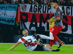 <blockquote class="twitter-tweet" data-lang="es"><p lang="es" dir="ltr">¡QUE PATADÓN!<a href="https://twitter.com/hashtag/LibertadoresxFOX?src=hash&ref_src=twsrc%5Etfw">#LibertadoresxFOX</a> ¿Qué te pareció la patada de Javier Pinola de River Plate sobre Martín Benítez de Independiente?<br>RT: Si crees que era roja y penal<br>MG: Si crees que no merecía sanción <a href="https://t.co/y5f2CcG3r5">pic.twitter.com/y5f2CcG3r5</a></p>— FOX Sports Chile (@FOXSports_Chile) <a href="https://twitter.com/FOXSports_Chile/status/1047261052830928896?ref_src=twsrc%5Etfw">2 de octubre de 2018</a></blockquote>