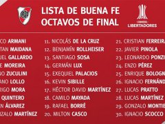 A 72 horas del partido del jueves frente a Racing, tal como lo requiere el reglamento, River Plate presentó oficialmente su lista de buena fe para los Octavos de Final de la Copa Libertadores de América.