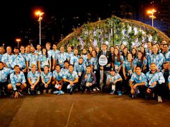 La celeste y blanca subió bien alto en la Villa Olímpica de Río de Janeiro, durante la ceremonia en la que se recibió a la delegación nacional. Hubo baile, mucha música brasileña y pasión bien argentina.