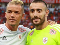 El defensor, que fue ovacionado por toda la hinchada de Inter de Porto Alegre, se abrazó con el Cabezón y también fue saludado por Lucas Alario, quien estaba presente en el encuentro.