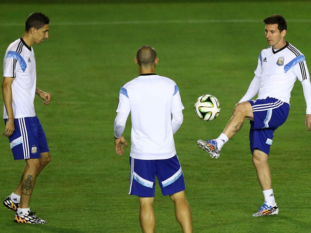 Pero no todas fueron buenas. Di María venía bien hasta que se resintió del dolor que lo venía azotando y terminó la práctica rengueando. De esta forma, sus chances de estar entre los once titulares comienzan a complicarse. Los elegidos por Sabella para enfrentar a los teutones serían: Romero; Zabaleta, Demichelis, Garay, Rojo; Biglia, Mascherano, Enzo Pérez o Di María; Lavezzi, Messi e Higuaín.