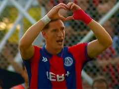 El ex Aldosivi llegó a la altura del vértice del área y tocó a la medialuna para Vombergar que la paró con la derecha, se acomodó y le pegó a colocar con la pierna zurda, clavando el balón en el ángulo superior izquierdo del arquero Guido Herrera que voló lo más que pudo pero no evitó el tanto del esloveno argentino.