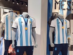 El modelo celeste y blanco a rayas, idéntico al utilizado en la final de la Copa del Mundo 2022 ante la selección de Francia, se ofreció exclusivamente de forma online para los miembros de la marca que viste a la albiceleste.