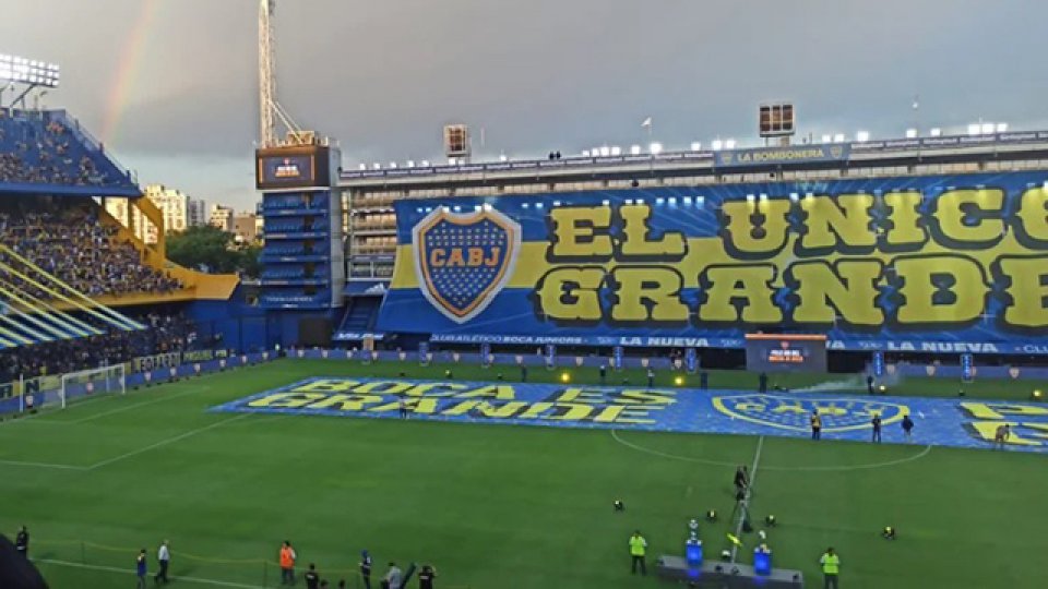 Esto contaba con el acompañamiento de "La 12" con cánticos alusivos que bajaban desde el primer piso de la bandeja norte del estadio. Todo esto tuvo un despertar previo de fuegos artificiales lanzados desde detrás de los arcos, que dejaron paso luego a los videos mencionados.