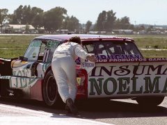 El uruguayense Nicolás Bonelli, finalizó una serie que venía liderando del Turismo Carretera en Viedma empujando su auto en los últimos metros. Su hermano Próspero, miembro del Bonelli Competición, no pudo contener las lágrimas.
