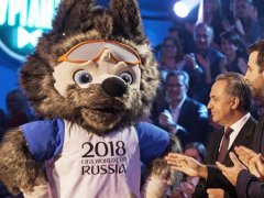 Zabivaka fue elegido la mascota oficial del Mundial Rusia 2018. El lobo "Pequeño goleador", quien usa pantalones cortos y gafas, obtuvo el 53 por ciento de los votos (entre más de un millón de votantes en la web de FIFA) y superó a los otros dos pretendientes: el tigre siberiano y el gato común.