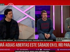 Si dios quiere y pudimos cumplir con el cronograma que tenemos con las inscripciones en el Club Estudiantes, la idea es que se suban a los Mini Bus 10.30 para llegar 11.15 aproximadamente desde Puerto Barrancas desde dónde será la largada y cumplir estos 8 kilómetros o sea que largaríamos a las 12 con 50 minutos de nado y una hora y cuarto de nado teniendo en cuenta que el río subió y eso nos permite que calculemos ese tiempo", dijo Solioz.