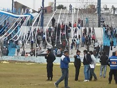 En el complemento, a los 14 minutos volvieron los momentos de tensión en Pirola. La Policía permitió la salida de la hinchada del Tricolor y afuera fue una batalla campal contra los uniformados. César Vianco consultó con la terna arbitral por la continuidad del partido, pero en ese momento se acercó el Jefe del Operativo, Marcos Antoniow "No garantizamos la seguridad", lo que llevó al juez del partido a suspender el encuentro.