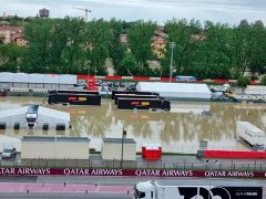 En las fotos se ve que el paddock de la Fórmula 2 está completamente cubierto de agua, también el recinto de televisión de la F1. Aunque los boxes y el paddock de la máxima categoría se han librado de lo peor por ahora, han decidido bajar la persiana del complejo.