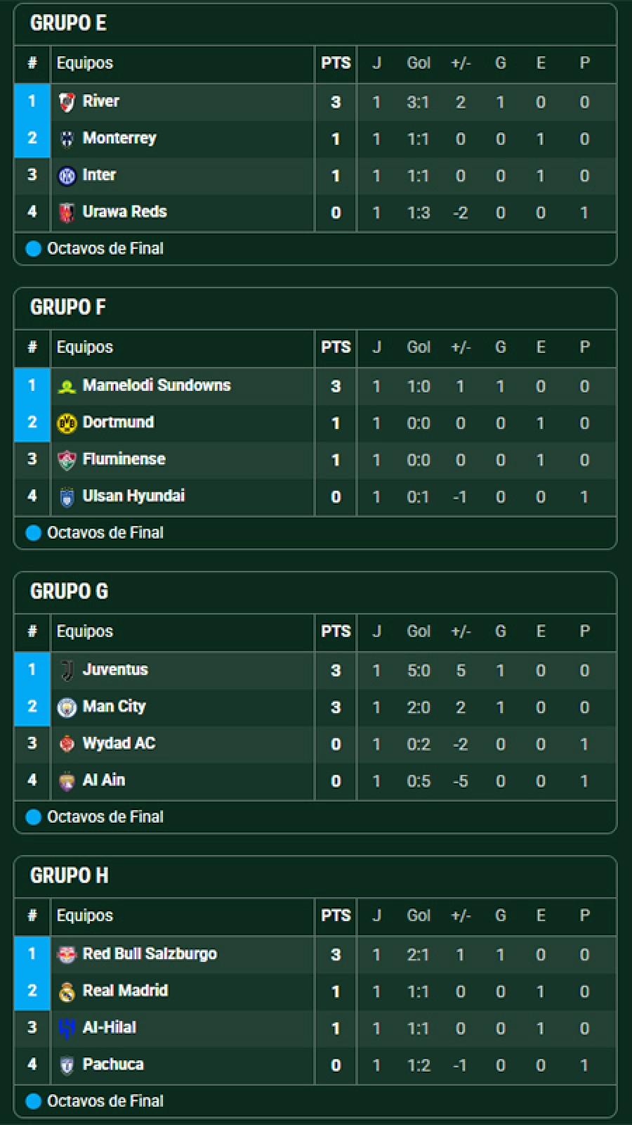 El Mundial de Clubes ya está en marcha y hubo victoria de River y empate para Boca. En el cierre de la primera fecha, ganaron Manchester City, Salzburgo y Juventus, mientras que Real Madrid apenas empató.