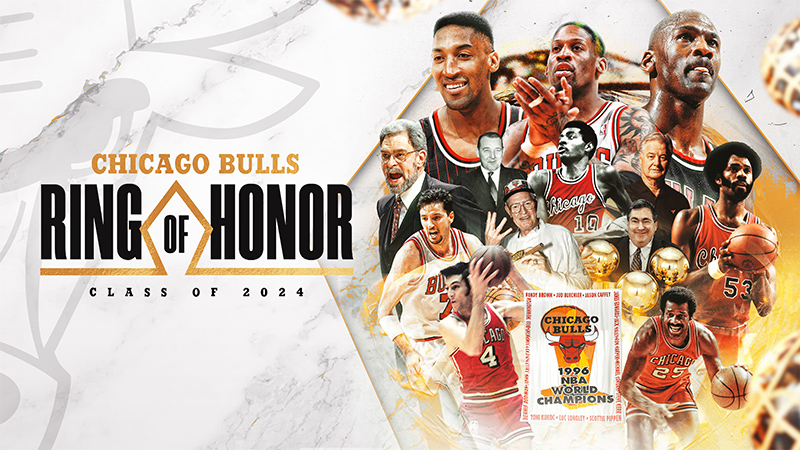 Los Bulls inauguraron su 'Ring of Honor', un espacio dedicado a las mayores leyendas de la fraquicia y que se estrenó con el equipo campeón de la temporada 1995-96. Uno de los principales ausentes fue Dennis Rodman, al que el mal tiempo impidió estar presente en la ceremonia, por lo que tuvo que grabar un video para la ocasión.