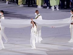Luego fueron relevados por seis miembros del personal de salud de Japón en reconocimiento, algo constante durante la fiesta inaugural, para aquellos que lucharon contra la pandemia de coronavirus desde la primera línea de combate.