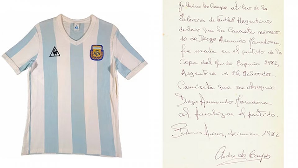 El sitio de subastas estadounidense PWCC Marketplace activó la licitación por la casaca de color albiceleste que Maradona vistió ante El Salvdor el pasado 23 de junio de 1982. El duelo, válido por la tercera jornada del Grupo 3 de la Copa del Mundo de la FIFA, terminó con un resultado favorable para el equipo de César Luis Menotti: Argentina le ganó 2-0 al conjunto de Centroamérica en el estadio José Rico Pérez, de Alicante. Los autores de los tantos de la victoria de los reinantes campeones del mundo fueron Daniel Passarella, de penal, y Bertoni.