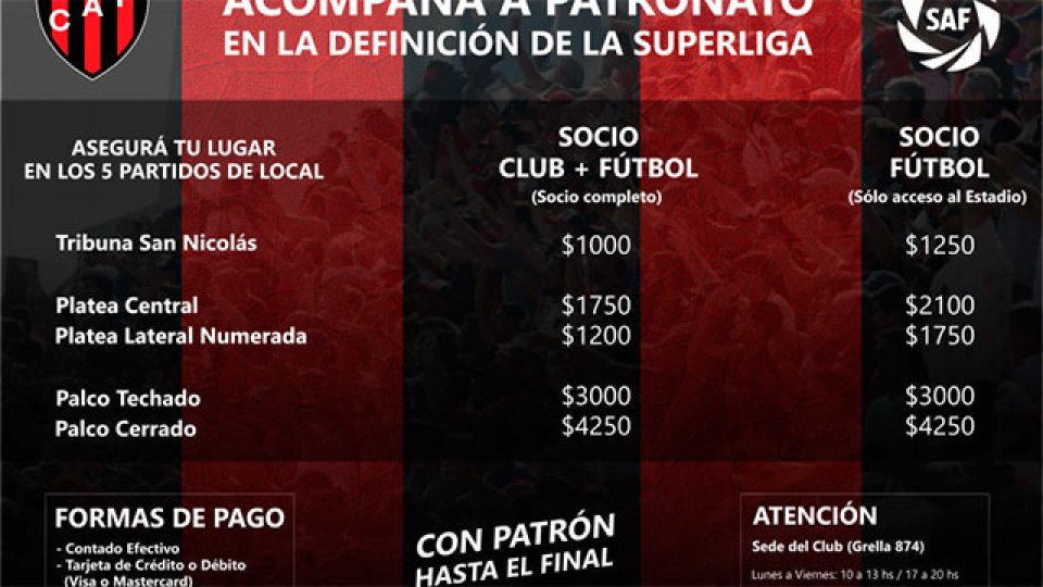 A partir del 2 de enero, estarán a la venta los abonos para la segunda mitad de la Superliga Argentina de Fútbol 2018/2019, en la cual el Rojinegro disputará 5 partidos en el Estadio Presbítero Grella (ante Atlético Tucumán, Aldosivi, Hurácan, Defensa y Justicia y Argentinos Juniors).
