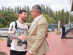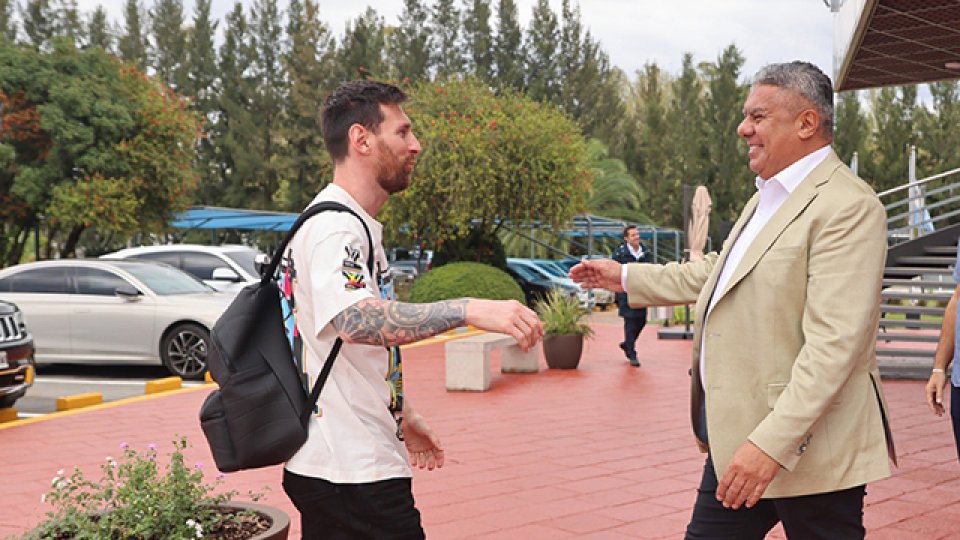 El presidente fue el primero en recibir al capitán de la "Scaloneta" en su ingreso al complejo del predio Julio Humberto Grondona. Messi arribó esta mañana al país junto con su familia y esta tarde ya estará a disposición de Lionel Scaloni.