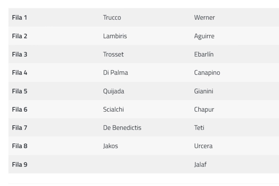 En la 2ª fila estarán Agustín Martínez que clasificó 7º con el Ford Mustang del Gurí Martínez Competición, y Julián Santero, que completó el top10 de la clasificación a bordo del Ford Mustang que atiende el Fispa Corse. Aunque vale recordar que el mendocino, líder del torneo, recibió una sanción de 5 puestos tras el toque que protagonizó con Otto Fritzler (Toyota Camry) en San Juan.