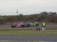 El susto más grande de la tarde se produjo cuando promediaba la última carrera de la "B". Kevin Alcaraz (Torino) quedó cruzado en el sector del hangar, y a partir de ese momento el resto del pelotón levantó para no pegarle. Sin embargo, se generó una carambola entre Luis Ponte (Ford), Nazareno Carreras (Ford) y Julian Carmody (Chevrolet 400) que dejó a los tres autos muy rotos. Inclusive "Luly" fue derivado al Hospital San Agustín producto de algunos dolores musculares, pero ya está en su casa haciendo reposo.