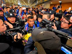 Tevez llegó a China: multitudinario recibimiento con pancartas y camisetas