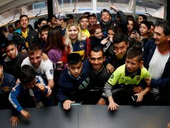 Mientras los jugadores entrenaban en Casa Amarilla, llegó un micro proveniente de Fuerte Apache con todos los chicos dentro. Carlitos terminó de practicar y, a pesar del cansancio, se prestó a firmar camisetas y a sacarse fotos con los jóvenes. Un gesto que lo hace aún más crack.