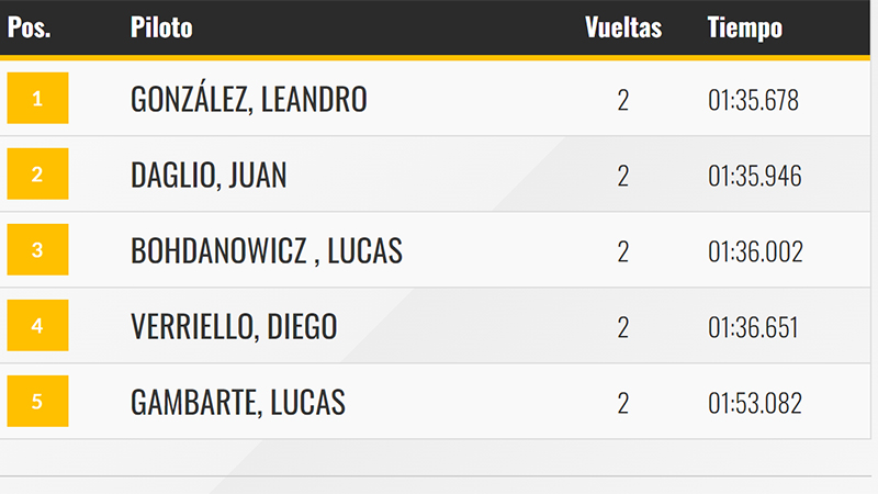 En el día de hoy se realizó la primera clasificación en Paraná. En la segunda categoría del Top Race, Juan Daglio (Toyota Corolla), oriundo de Lucas González, secundó a Leandro González (Toyota Corolla) en la décima fecha de la competencia.
