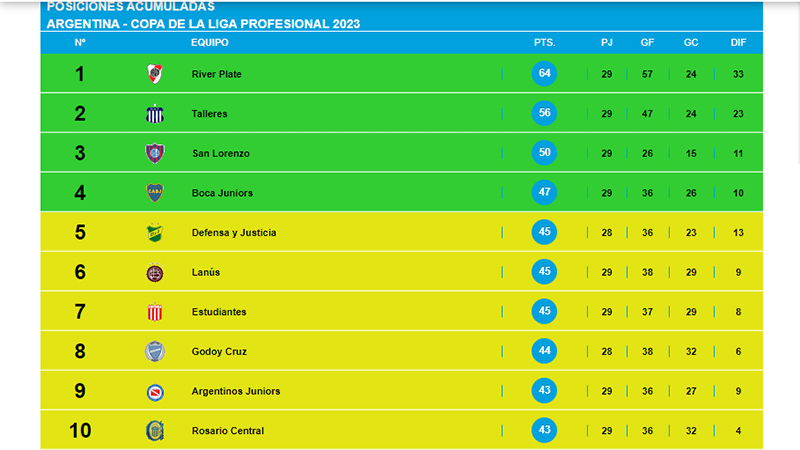 La Copa de la Liga cerrará el año futbolístico en la Argentina y la tabla acumulada determinará qué equipos clasificarán a las Copas Libertadores y Sudamericana de 2024.