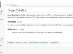 Luego del cuestionable arbitraje en la Final de la Copa Argentina, la biografía de juez Diego Ceballos fue modificada en la enciclopedia virtual. El colegiado apareció como "un hincha reconocido de Boca". El cambio duró algunos minutos.