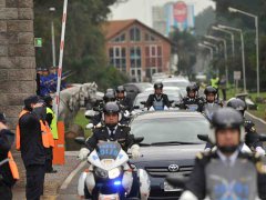 Dos autobombas de los Bomberos Voluntarios de Sarandí, cuatro vehículos con coronas y flores y 10 motos de la policía bonaerenses acompañaron la caravana.