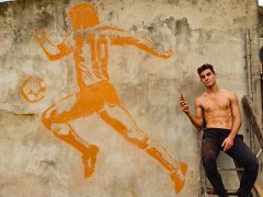 El joven jugador de Juventud Unida que le regaló un mural a Maradona.