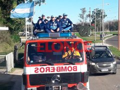 La delegación nacional se subió a dos autobombas en la Facultad del Informática de Oro Verde, y desde allí encabezaron la caravana, que fue acompañada por más de dos kilómetros de vehículos, entre los que se podían ver autos, camionetas y motos, y que se extendió hasta la explanada de la Casa de Gobierno, donde el vicegobernador Adán Bahl, entregó dos placas en reconocimiento a los campeones, quienes firmaron autógrafos y se sacaron fotos con los miles de fanáticos que se acercaron a saludarlos.