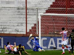 Fue el propio Fértoli quien volvió a intentar minutos más tarde: se escapó en tres cuartos de cancha, se acomodó para su pierna hábil y, en el filo del área grande, sacó un disparo a colocar que se fue a centímetros del palo del guardameta del Tatengue.