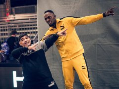 El ex velocista, ganador de once títulos mundiales y ocho oros olímpicos, sueña con comenzar una carrera como futbolista, por eso no dejó pasar la oportunidad de compartir un momento con Diego, el jugador más grande de todos los tiempos.