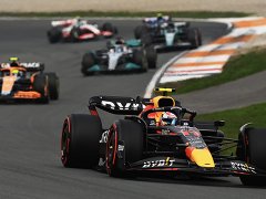 Hamilton volvió a pista con buen ritmo y a medida de que sus neumáticos lograron adherencia se acercó a Checo Pérez al que quiso superar en el giro 36, pero el mexicano bloqueó en la curva Tarzán, la primera del trazado neerlandés y pudo defenderse. Sin embargo, en la vuelta siguiente Pérez no pudo aguantar la embestida del británico que lo superó por afuera. Más tarde el azteca también perdió ante George Russell, con el otro Mercedes.