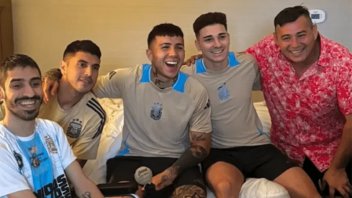 Luego de regalarle su camiseta, Palacios hizo entrar a la habitación a Enzo Fernández y a Julián Álvarez, dos figuras de la Scaloneta y vinculados a River, club del que Juan es fanático.