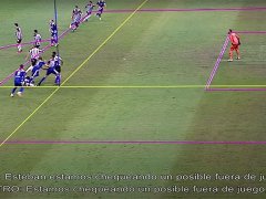 La voz en off de la presentación del video entre los árbitros anticipó: "A los 63 minutos, luego de un centro, el árbitro asistente retrasa su decisión para luego confirmar el gol. El VAR analiza la jugada y observa que la rodilla del delantero (González) que se encuentra con una línea roja está más cerca de la línea de meta que el pie del último adversario que se encuentra marcado con una línea azul. Al ser una jugada de fuera de juego interpretativa, se recomienda al árbitro una revisión de campo. El árbitro, al analizar las líneas virtuales y el movimiento de los jugadores, decide cambiar la decisión a fuera de juego por interfereir un adversario por disputarle el balón".