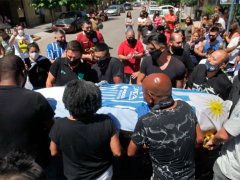 Los hinchas acompañaban a los allegados al jugador en medio de escenas de dolor y emoción por la pérdida. La madre y el hermano del exfutbolista del club mendocino viajaron anoche desde Uruguay para estar presentes en la despedida de García.