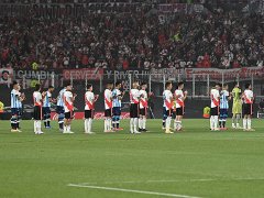 Como en todas las canchas del fútbol argentino, los jugadores y los árbitros modificaron la tradicional manera de pararse en el campo de juego y todos formaron un diez, número característico de Maradona. Enseguida, desde todas las tribunas, plateas y palcos, hubo aplausos y cánticos generalizados para Diego.