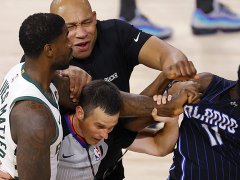 Terminaron a los empujones, con el de los Bucks sosteniéndolo de la camiseta con una mano como si estuviera por darle un golpe con la otra, uno de los árbitros interponiéndose y hasta un miembro del staff cayendo al piso por un sacudón del hombre del Magic.