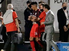 Con visibles muestras de dolor, Pérez fue retirado del campo de juego por los médicos del plantel "millonario" y reemplazado por Bruno Zuculini.