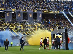 "Boca, el único grande", fue el lema de una pancarta gigante que se instaló en el campo de juego. Globos azules y amarillos, humo con los mismos colores y fuegos artificiales en la salida de los equipos a la cancha, para hacerle sentir el rigor al visitante. Un espectáculo bárbaro, poniéndole calor a la tarde gris.