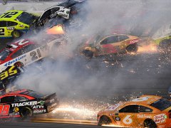 Se dieron un "palo" espectacular 22 coches en un accidente a diez vueltas del final de las 500 millas de Daytona, correspondiente a la Copa Nascar. No hubo heridos de gravedad pese al choque múltiple que dejó chispas, humo y muchos trompos.
