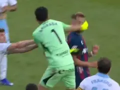 Así le propinó un golpe al jugador del Huesca. Foto: Captura de video.