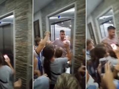 En ese preciso instante, las puertas del ascensor se abrieron y, en su interior, apareció el futbolista del Olympique Lyon, quien los invitó a salir afuera para poder sacarse fotos con todos los nenes, que lucían camisetas de la Albiceleste en su gran mayoría.