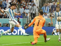 Minutos más tarde, Argentina agarró mal parada a la defensa croata con un contraataque. Álvarez tomó la pelota en la mitad de cancha y avanzó con la pelota en los pies, no lo pudo parar ningún defensor. Y así de atropellada llegó hasta Livakovic, ante su salida, y la tocó por un costado al primer palo.