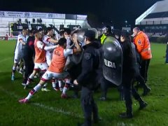 Patronato perdió ante Barracas en un partido que terminó en escándalo y los jugadores peleando con la policía. Tras el 2-1 para el local, el DT Sava ingresó a la cancha para buscar al árbitro Baliño y se desató una batalla campal.