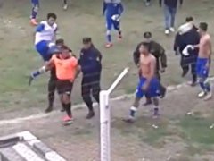 Cuando el referí se estaba retirando del campo de juego, escoltado por algunos policías, los jugadores de La Tablada volvieron a la carga y le pegaron cuatro brutales patadas en la cabeza y el torso, da cuenta TyC Sports.