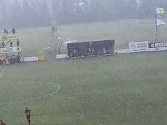 El Santo debía dar el puntapié inicial ante Flandria a las 17 horas del sábado en Buenos Aires, pero una fugaz lluvia de granizo obligó a los jugadores a salir de la cancha y postergó el arranque encuentro algunos minutos.