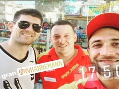 De camino a Caseros, donde se dirigía para encontrarse con su familia, el defensor de Gremio, pretendido por varios clubes grandes del continente, estuvo de paso por su ciudad de natal y se sacó fotos con la gente que se acercó a saludarlo.