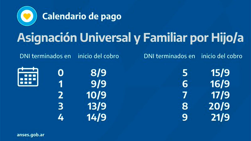 La ANSES, organismo a cargo de la Lic. Fernanda Raverta, informa el calendario de pagos del mes de septiembre para jubilados, jubiladas, pensionados y pensionadas, Pensiones No Contributivas, titulares de la Asignación Universal por Hijo y la Asignación por Embarazo, Asignaciones Familiares y de Pago Único (Matrimonio, Nacimiento y Adopción) y Prestación por Desempleo.