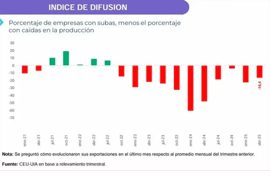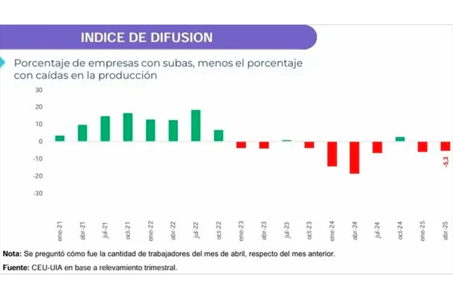 Otro dato negativo fue el índice de difusión. Este indicador mide el porcentaje de sectores con subas menos el porcentaje con caídas. En esta encuesta se ubicó en -6,9%. El anterior informe de octubre de 2024 había mostrado una recuperación.