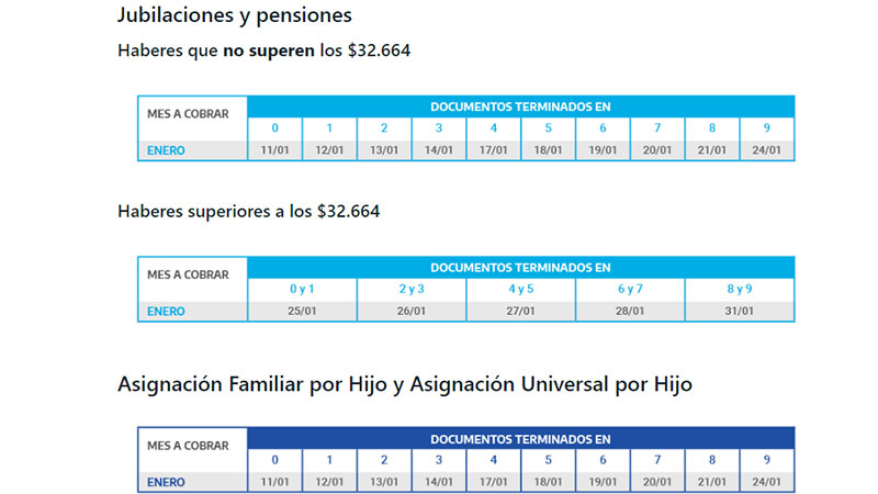 El organismo confirmó las fechas de cobro de enero para titulares de la Asignación Universal por Hijo AUH), la Asignación Universal por Embarazo (AUE), jubilaciones, pensiones y otras prestaciones.